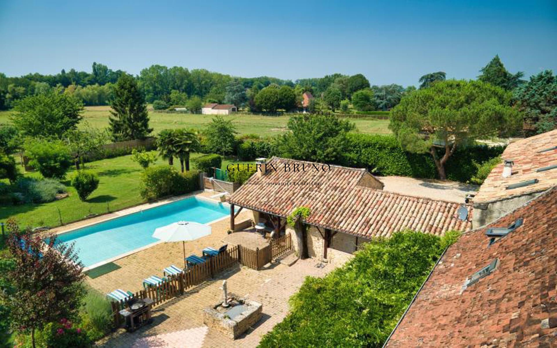 L'accès à la propriété se fait par une petite allée fermée avec un magnifique portail en fer forgé. Le jardin clos, agrémenté de différentes essences, s'étend en limite Nord, laissant place à une piscine de dimensions généreuses (12x6 m) pour des journées estivales rafraîchissantes. Cette propriété est présentée par l'agence GUERIN BRUNO IMMOBILIER, spécialiste des biens de caractère en Dordogne et Périgord. Pour découvrir ce bien d'exception, contactez Bruno GUÉRIN au +33 (0)6 42 02 03 26.
