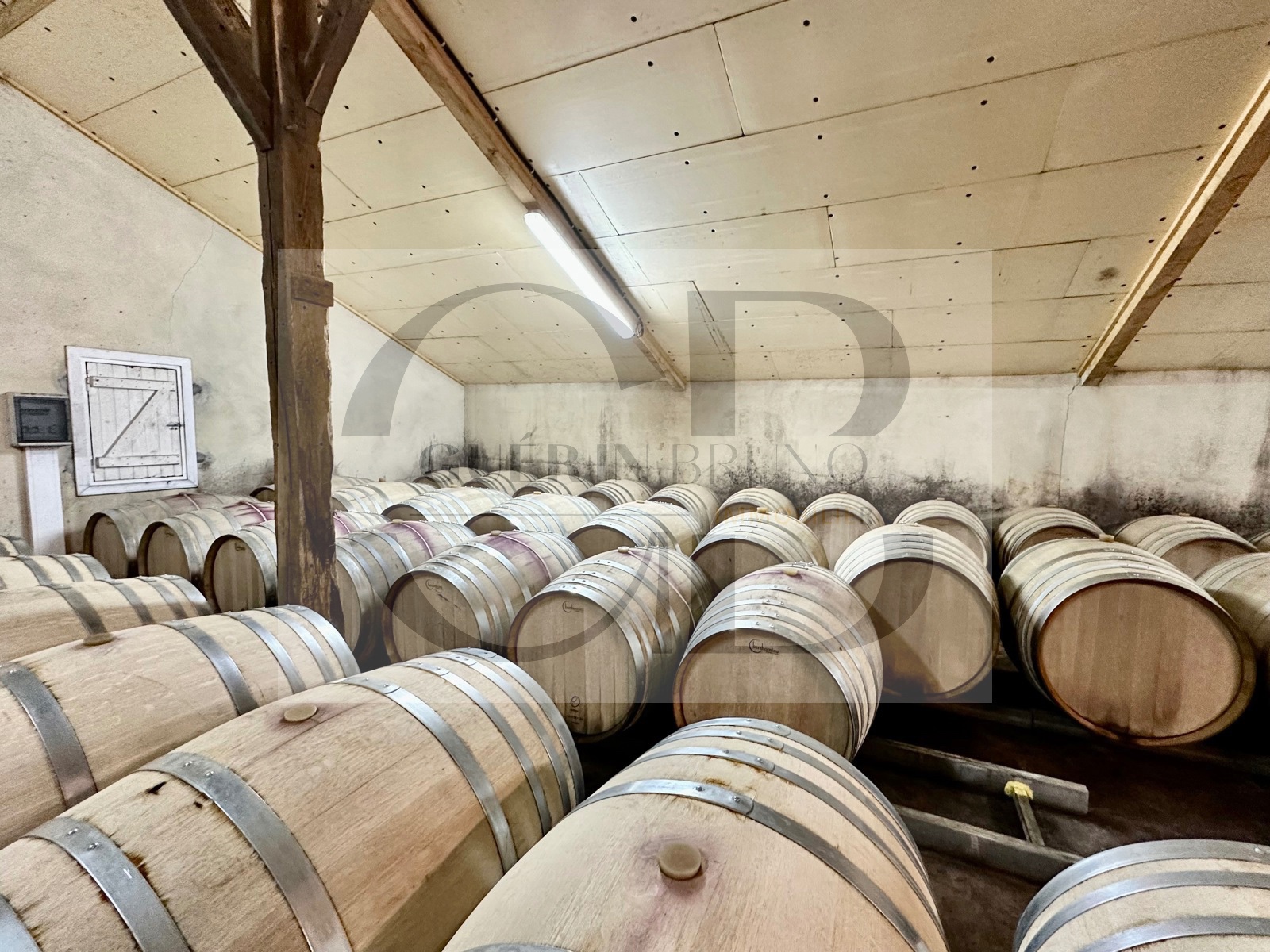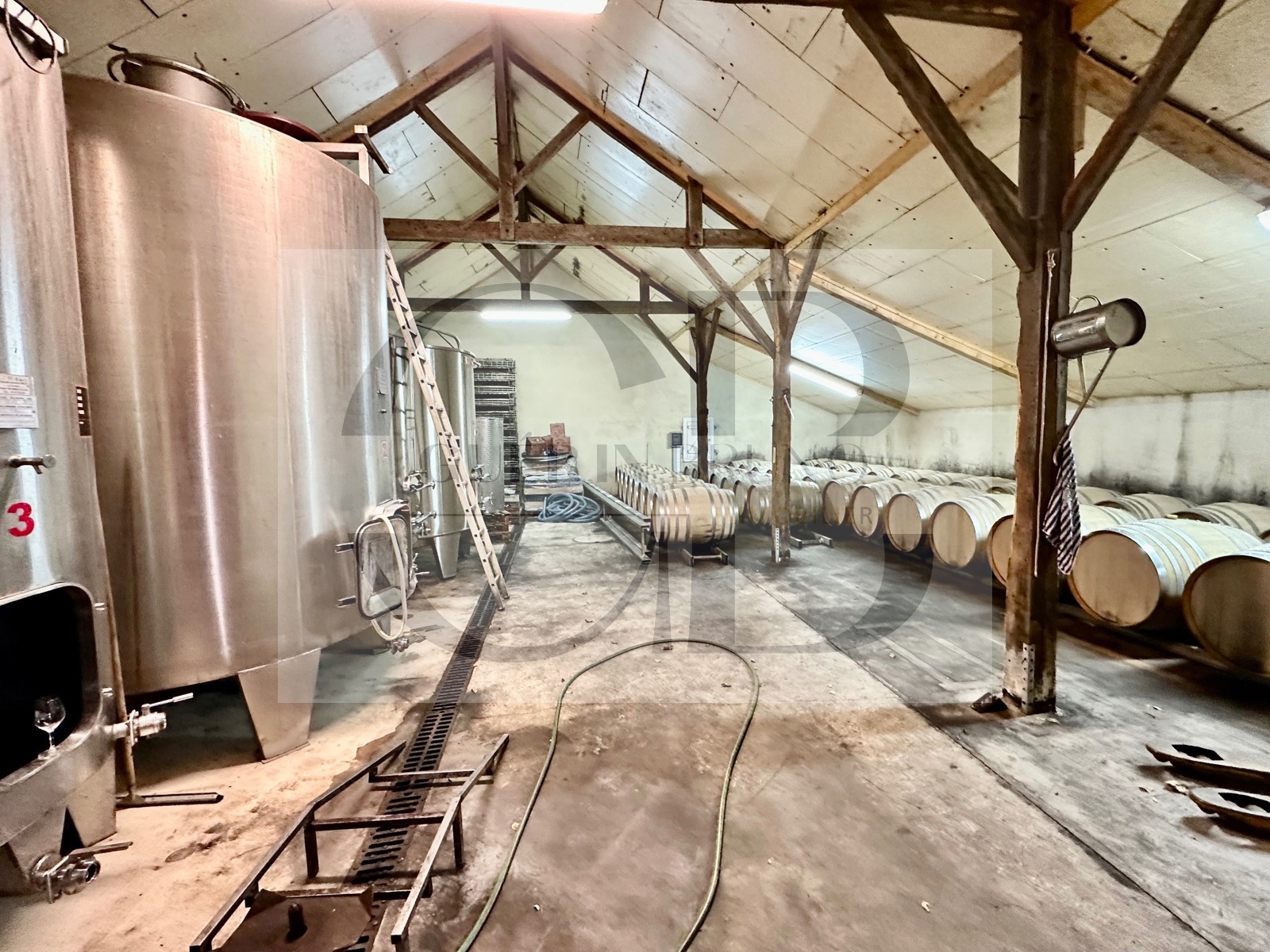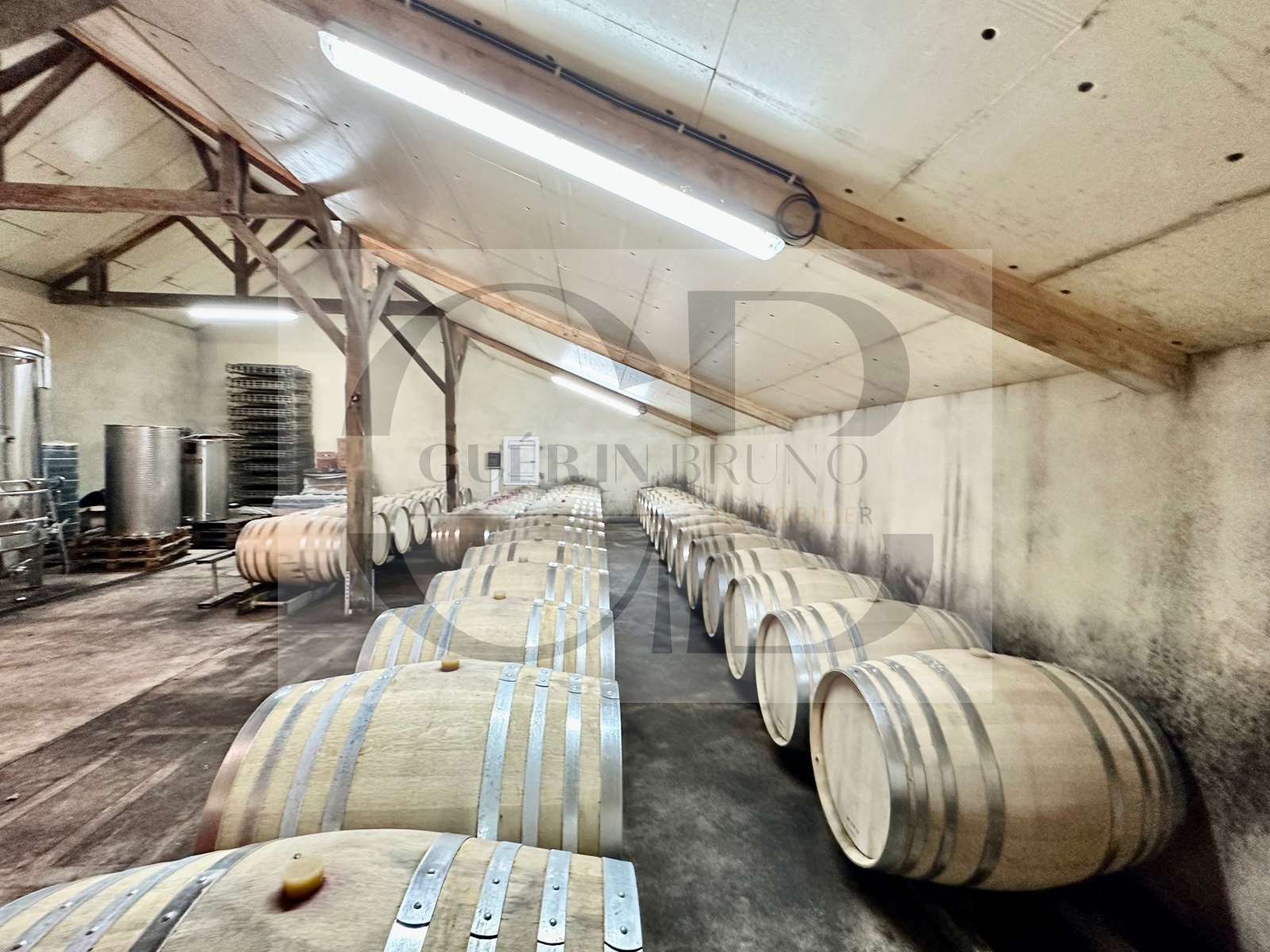 Un second bâtiment en trois parties est destiné à la vinification, le premier espace est séparé en deux parties, l’atelier et la salle des commandes de gestion du froid/chaud des cuveries. Le second bâtiment abrite le chai de vinification qui est isolé/ climatisé avec les cuves inox thermo régulées, l’ensemble de l’outil est totalement fonctionnel et moderne. La dernière partie est une réserve et espace étiquetage, emballage des commandes. Un dernier bâtiment toujours situé dans la cour de la propriété abrite le chai de vieillissement avec de belles barriques, le bâtiment est lui aussi isolé et climatisé.