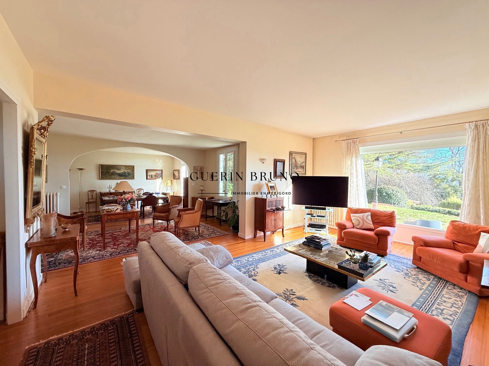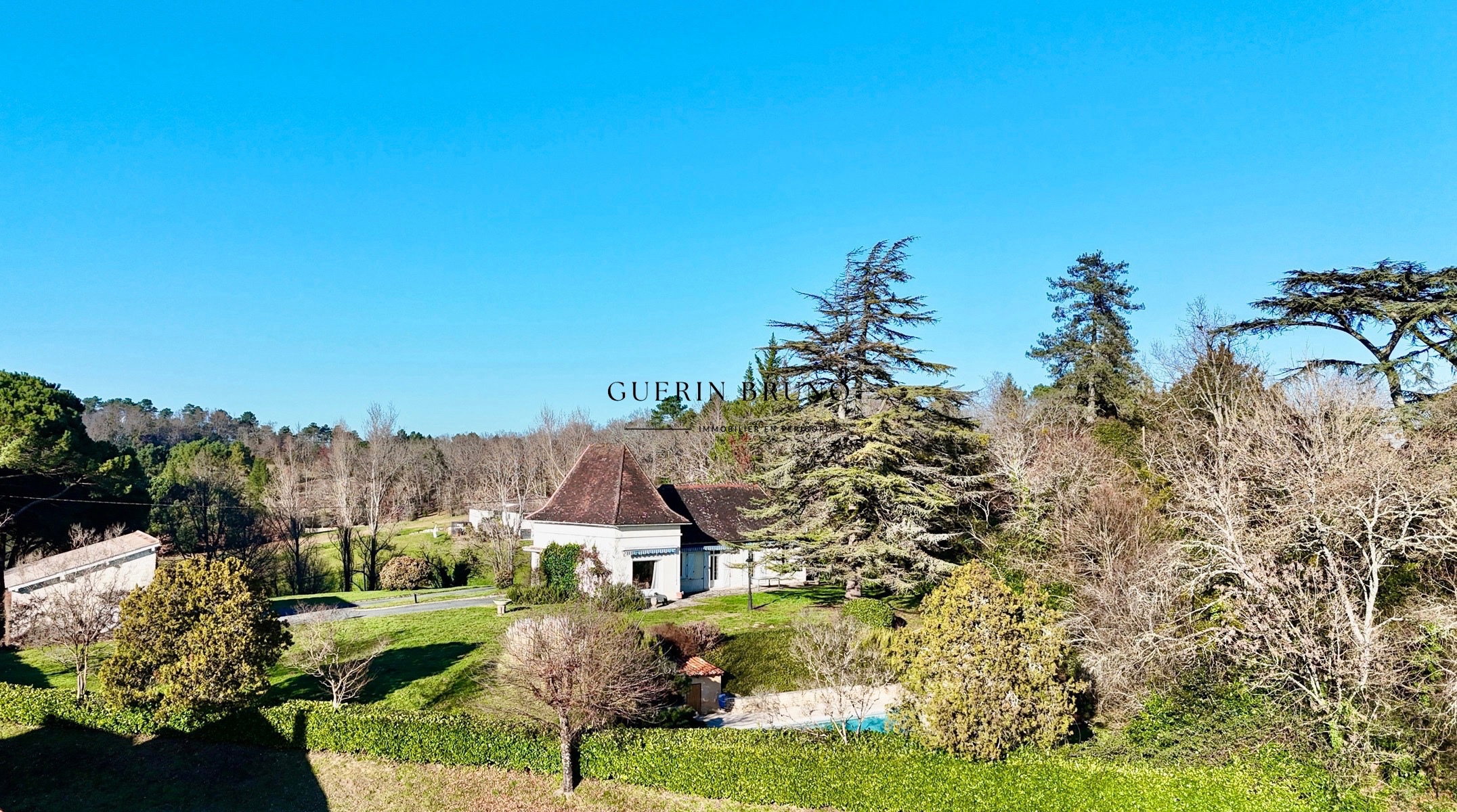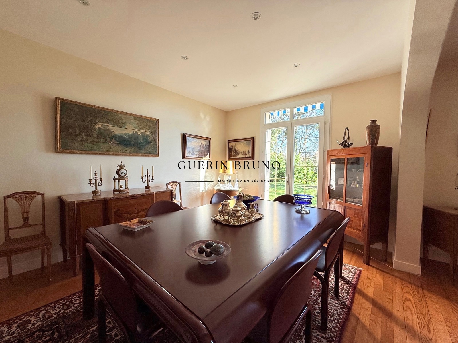 Cette élégante demeure située dans le Périgord Pourpre, à proximité de Bergerac, offre un cadre paisible et une vue imprenable sur la ville. Le jardin paysager et l'espace piscine, avec une vue panoramique depuis la terrasse ombragée, invitent à la détente. La propriété, bien connectée à la ville, se trouve à seulement 8 minutes de Bergerac et de ses commodités.