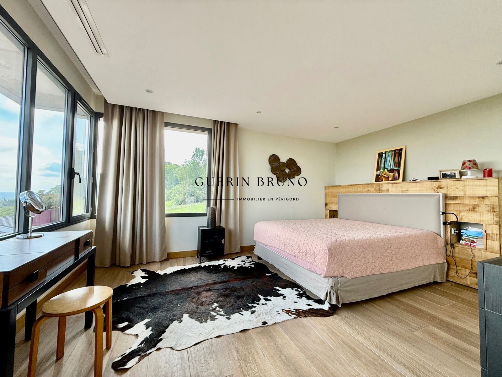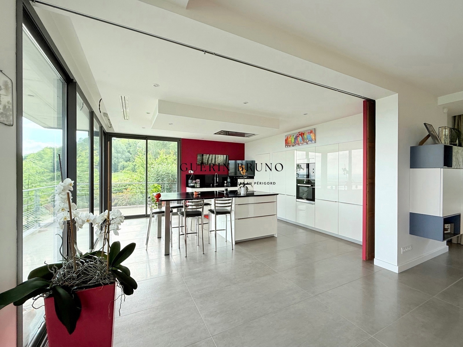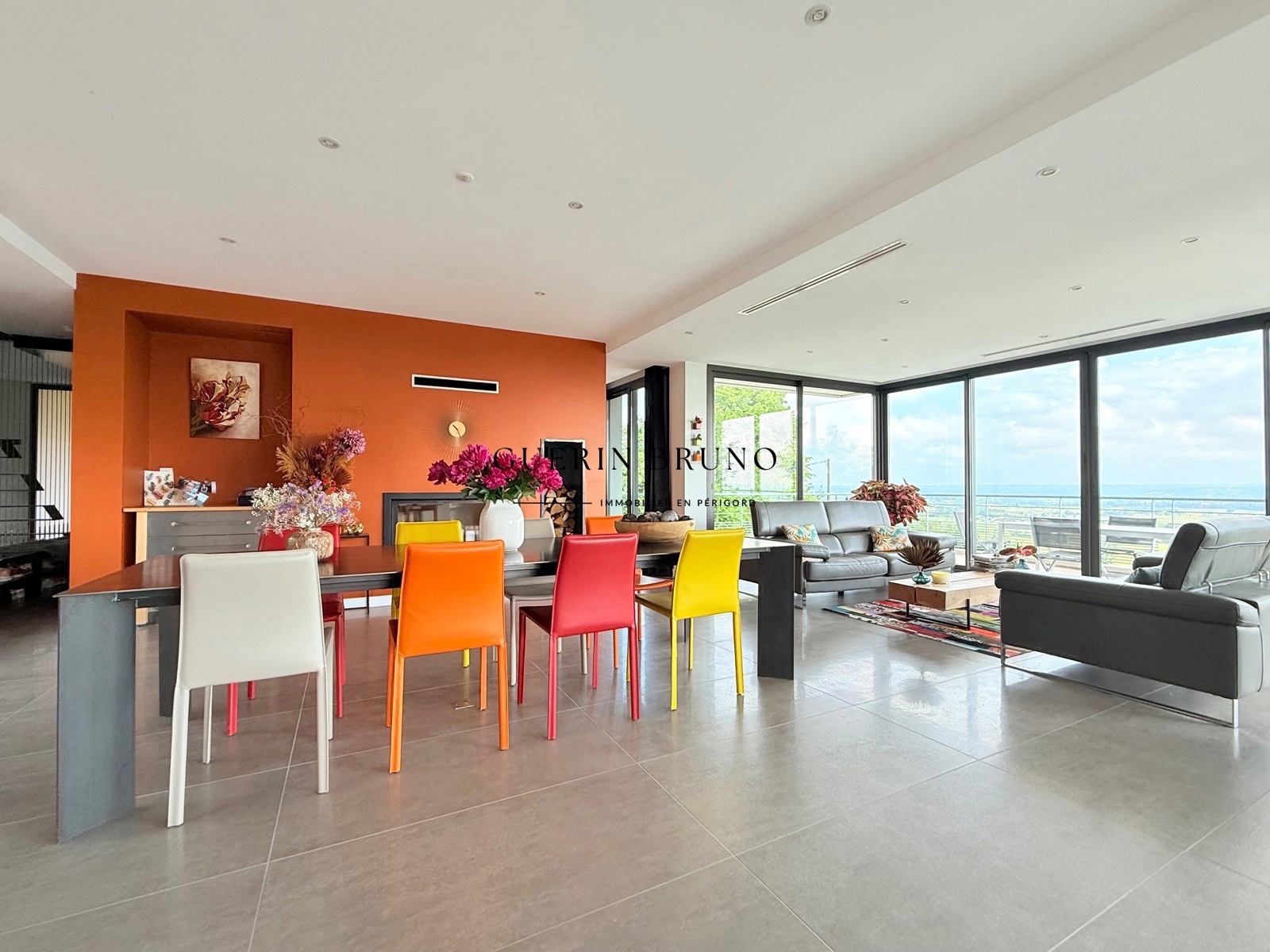 Idéalement située à quelques minutes du centre de Bergerac et de toutes commodités, cette villa d’architecte contemporaine bénéficie d’un environnement privilégié, mêlant proximité des commerces, des écoles, de la gastronomie locale… et vue panoramique imprenable sur les coteaux Nord de Bergerac.