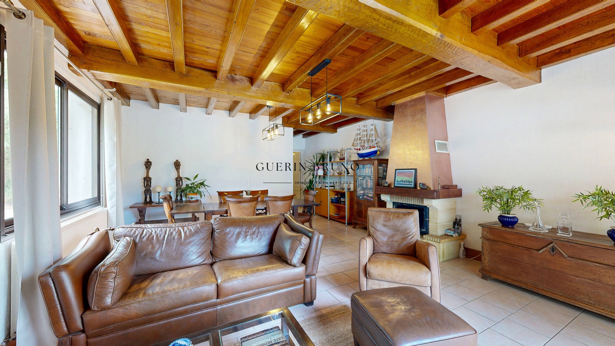 Cette élégante bâtisse en pierre enduite, coiffée de tuiles plates, a été rénovée avec goût. Elle offre de beaux volumes et un cadre de vie raffiné.