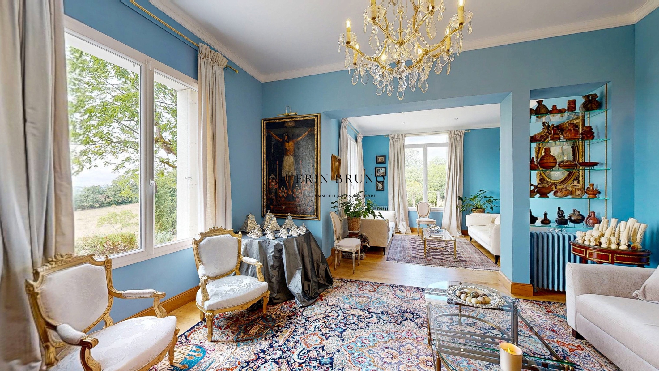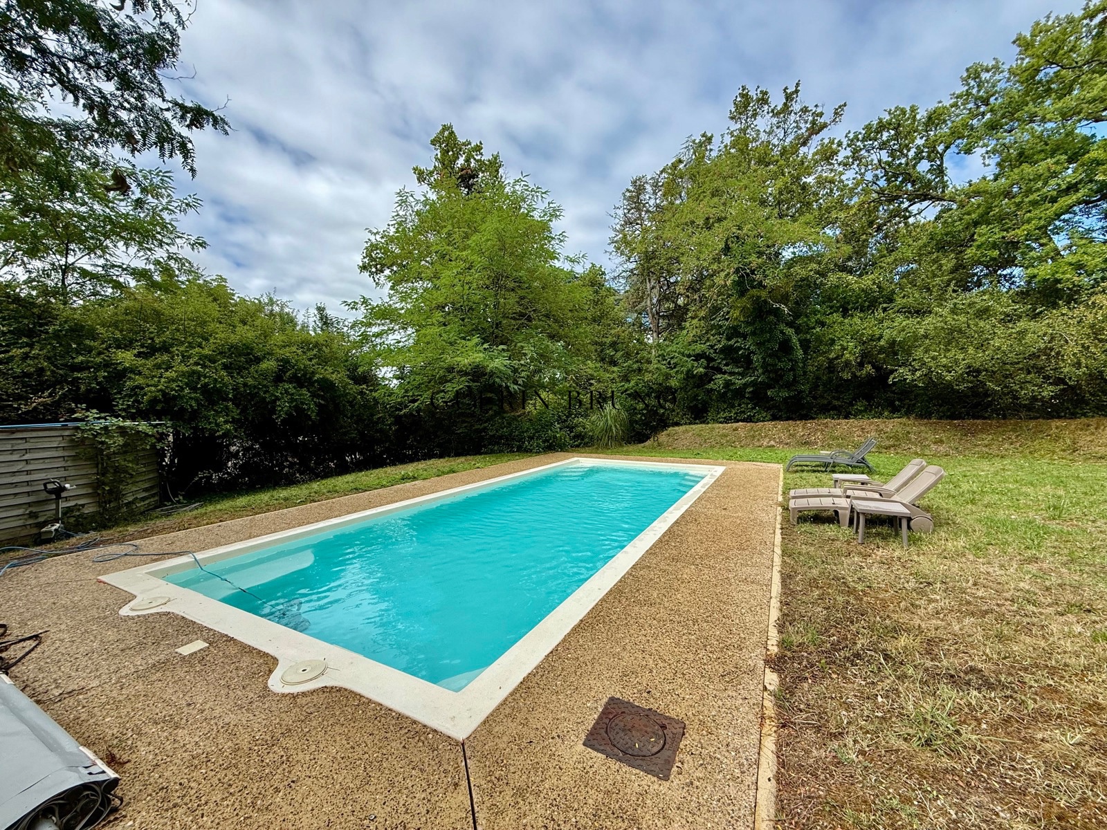 D’un parc paysager aux abords de la maison, avec de belles essences (magnolia, chênes, lagerstroemias).