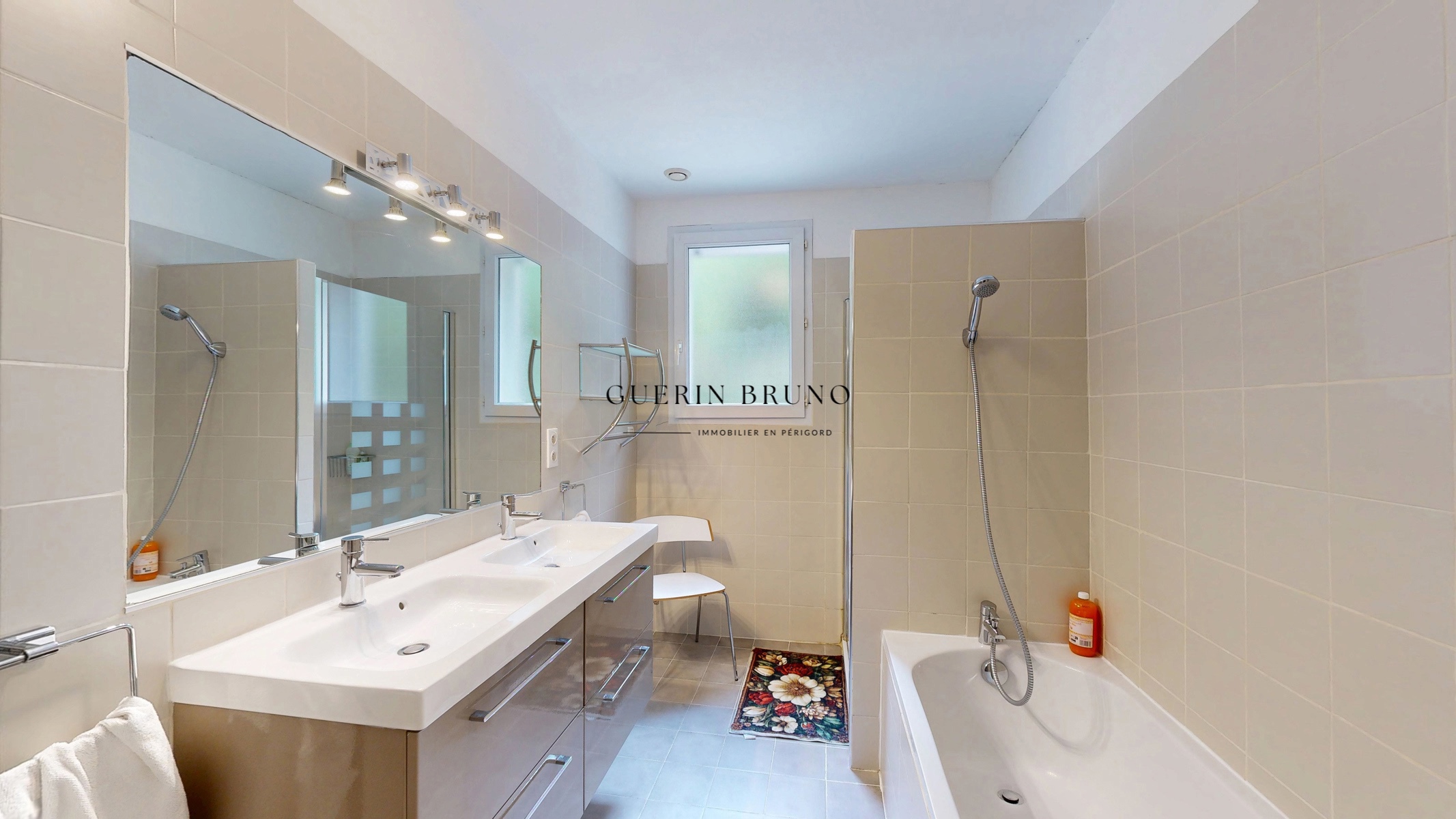 1er étage : entièrement réservé aux propriétaires : grande chambre de 35 m², salle d’eau avec douche italienne, double vasque et WC, dressing, bureau et WC indépendant.