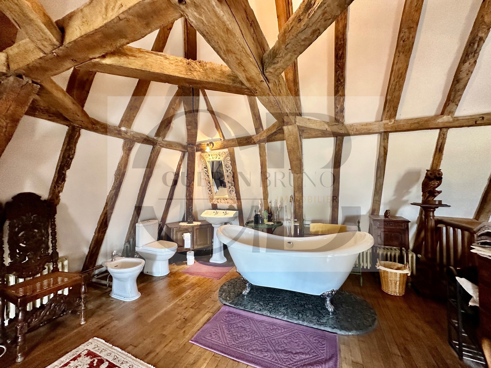Le deuxième étage abrite une suite parentale spectaculaire, avec une magnifique charpente de style bateau, ajoutant une touche de caractère unique à cette demeure. Cet espace privé deviendra votre havre de paix, où vous pourrez vous détendre et vous ressourcer en toute quiétude.