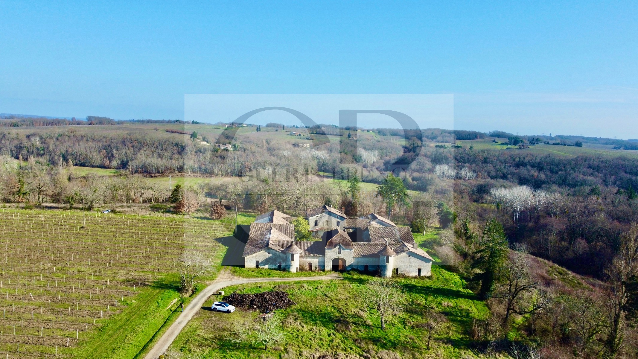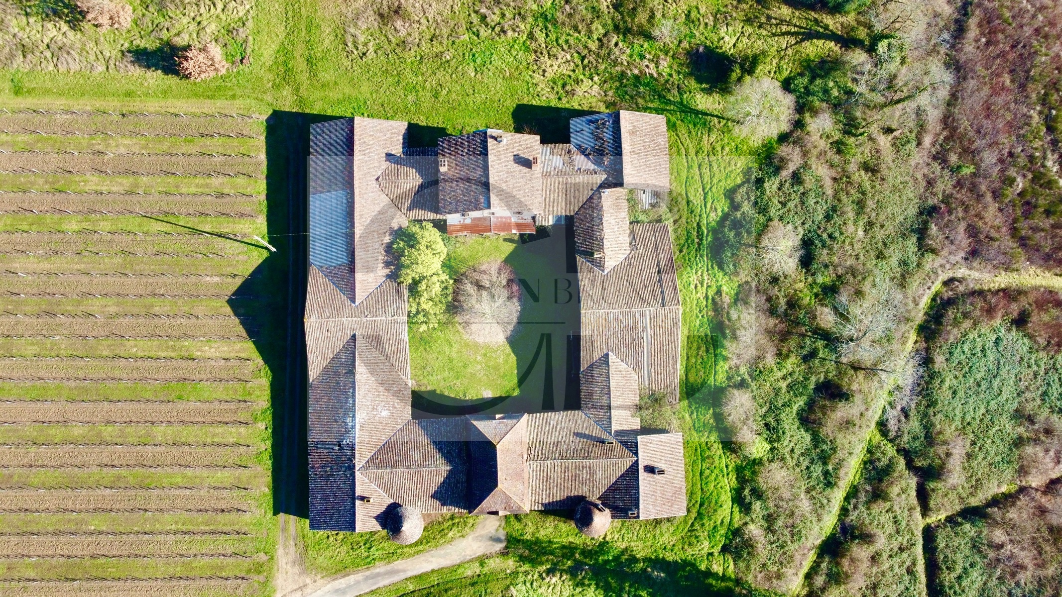 Situé au sein d'un vignoble réputé, ce bien exceptionnel offre un potentiel de rénovation unique sur un terrain de 8,3 hectares, offrant une intimité totale et une vue imprenable sur les vignes environnantes. Le corps de bâtiment, datant de la fin du XIXème siècle, est regroupé autour d'une charmante cour de 781 m², offrant un cadre pittoresque et plein de caractère. Vous pénétrez dans cet ensemble par un magnifique porche flanqué de deux petites tours sur ses cotés ainsi la cour centrale donne accès à tous les bâtiments.